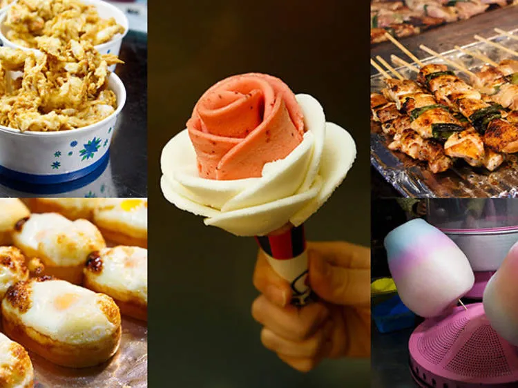 Packed with pojangmacha (tented food carts) alongside tourists and locals alike lining up to try new snacks, Myeongdong adds another dimension to the street food game. Tteokbokki, fish cakes or hotteok are great but they’re considered pretty much basic here. Grilled scallops, potato tornados, cheese potatoes, beef steaks and even lobsters are cooked up at these little carts. Department stores also line the streets.