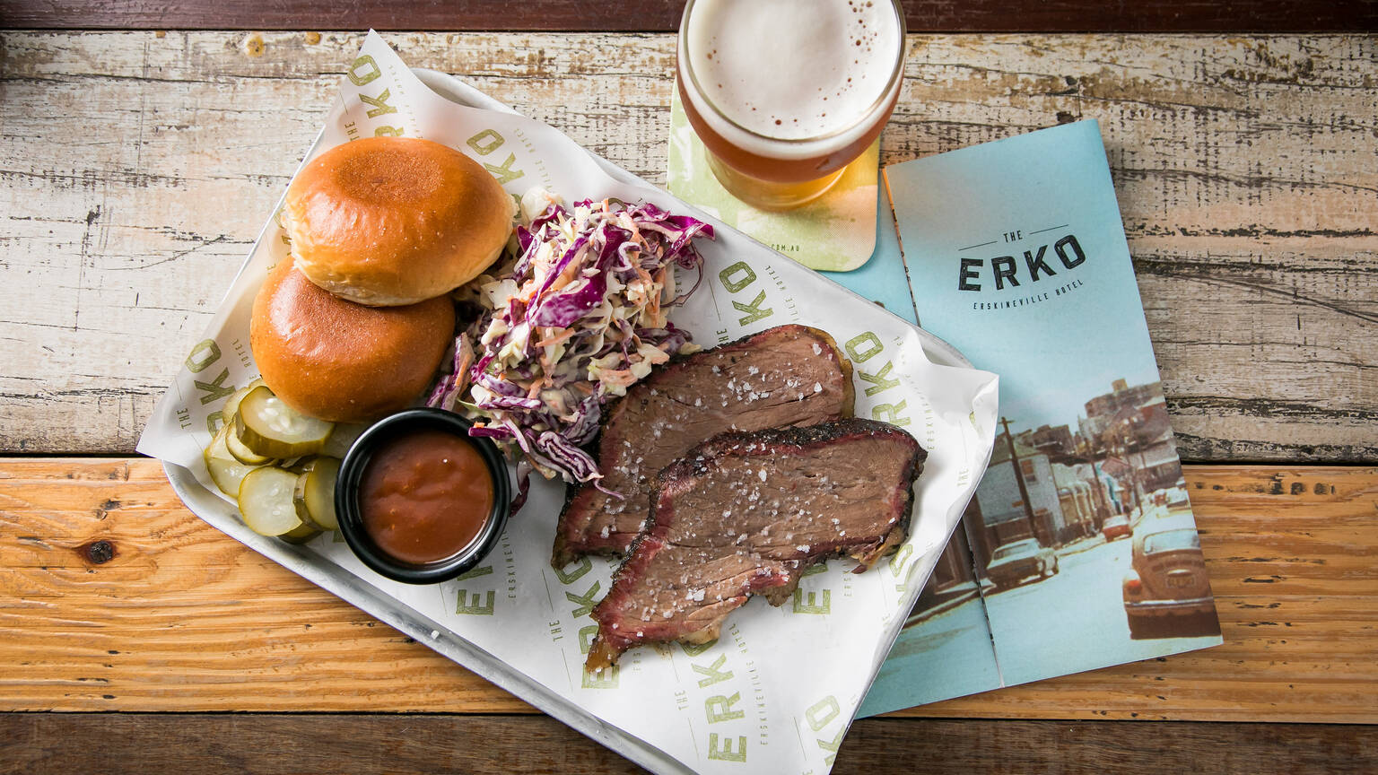Beloved neighbourhood boozer The Erko is a reliable go-to for afternoon beers with mates in the sunshine, family lunches and a casual vino. Plus, dogs are welcome. If you’ve noticed they’ve stepped up their food game of late, you’d be right. Solotel – the hospo group who have run the pub since 2014, and also oversee Sydney spots Opera Bar, The Abercrombie and The Golden Sheaf, among others – have brought on former Chiswick chef Ethan Robinson to inject freshness and flavour into the menu. Now, everything is pretty much made in-house – including bread, and they are cutting all the chips by hand. Plus, the chefs are growing their own veggies in a local community garden, having fun with pickling and preserving, and using ‘ugly fruit’ that would normally be food waste.