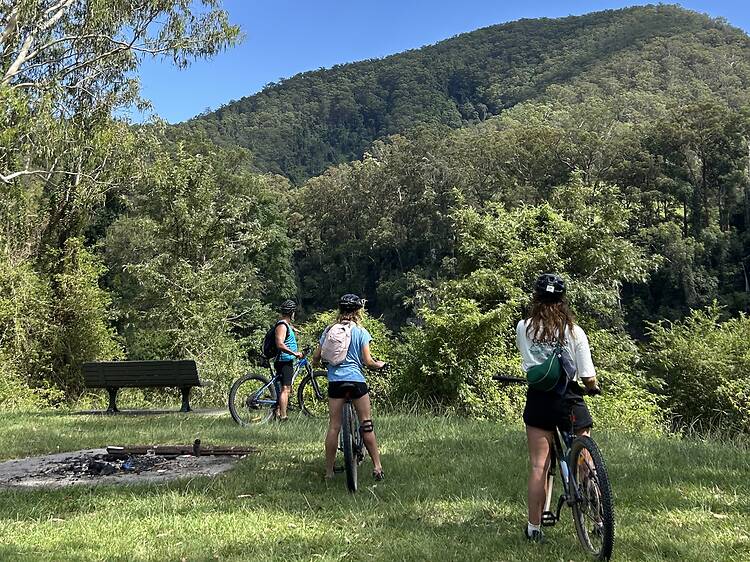 I spent most of day six off my bike, pushing it up the mighty 588-metre climb to Comboyne – a cute little village at the top of the Comboyne Plateau. We stayed the night at a beautiful converted sawmill on the banks of the Camden Haven River, and spent the afternoon in the garden beneath the shade of the fig trees. The Comboyne RSL serves up perfectly hefty pub feeds with views of the valley, but there’s an IGA if you’d rather cook up a feast in the house before jumping into the hot tub.