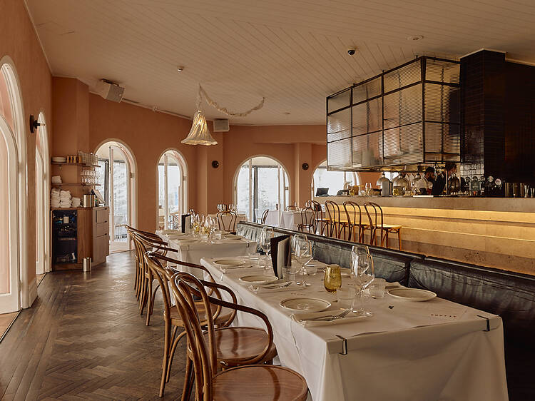 Made up of snacks and share-style plates, the menu leans coastal, so expect lots of fresh seafood. On the line-up: golden, crisp jamón croquetas; pan con tomate with the option to add jamón Ibérico or a Cantabrian anchovy (do); whole grilled squid brightened with a zesty parsley oil; and a brothy rice topped with mussels, prawns and calamari. Prefer your produce from the land? Go for the lamb belly ribs, paired with caper, lemon and oregano; or go all out and order the 1kg Kidman rib eye with piquillo peppers, fries and condiments.