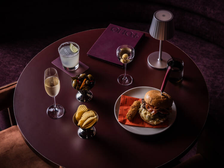 The food menu keeps pace with the bar’s shapeshifting personality: flexible, delightfully familiar and designed to be shared. You can share a plate of wildly moreish manchego croquettes or an L.P.’s cured meat plate, or throw yourself into heartier territory with a wagyu lasagna or stacked burger loaded with Pino’s smoked bacon and a fried pickle. Late-night classics get a glow-up too, with a solid menu (featuring the bar’s perfectly umami buttermilk fried chicken) available from 9pm. For dessert, the chocolate mousse served tableside is pure theatrical delight.
