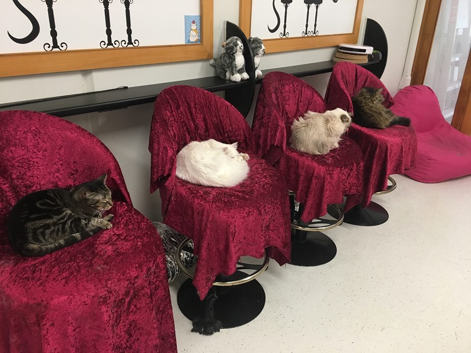 Cat cafés originated in Taiwan and were taken to new heights in Japan. The premise is simple: Pay a nominal fee and spend an hour cavorting with kitties. It’s kind of like renting a pet, or visiting a cat hotel