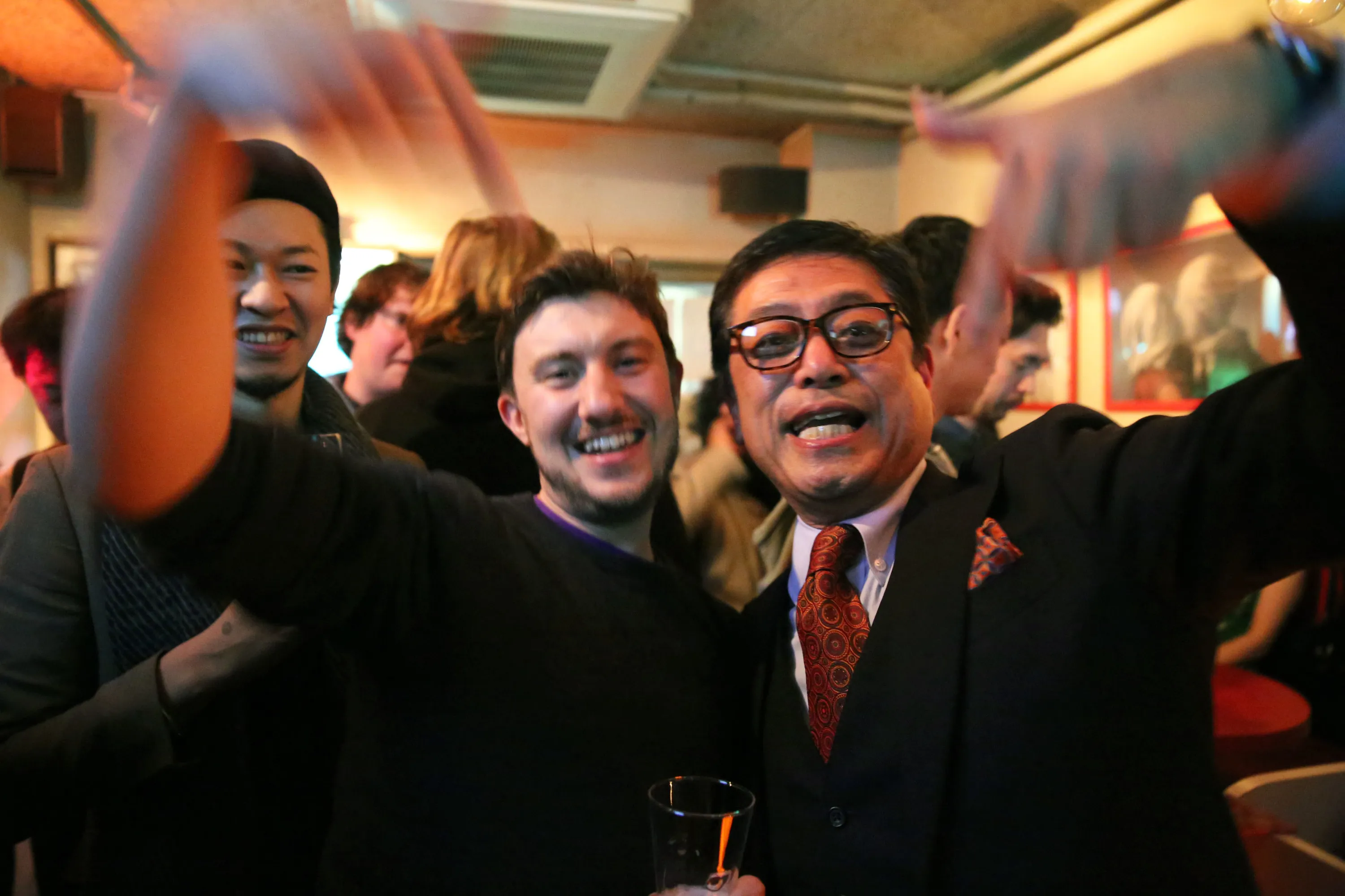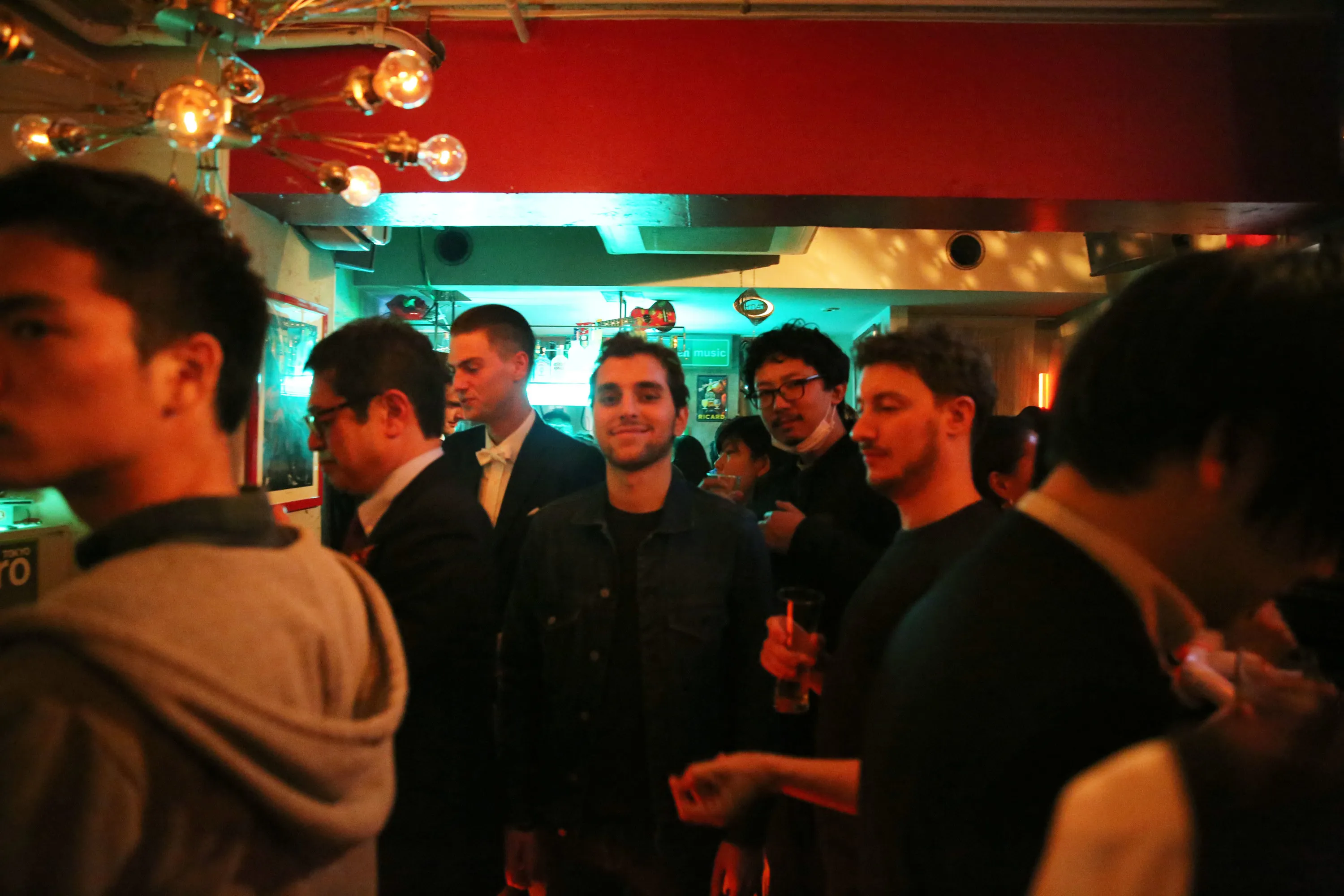 After paying a reasonable ¥300 at the jam-packed entrance, we join a motley crew of revellers dancing their socks off to domestic disco, funk and rock'n'roll from the glory days of Showa. Accommodating no more than 50 people, the venue feels like a cosy shelter from Shibuya’s relentless hustle and bustle. Judging from the turning heads and hearty cheers greeting certain latecomers clad in retro striped suits and brogues, it appears most of the patrons are regulars at the fête. Before joining in on the fun, members of the in crowd stop by the small DJ booth for a high five or handshake with Miller, who spins seven-inch records in a snazzily cut suit and floral tie with his hair slicked back – fitting for a man with the stage name 'Dandy'.