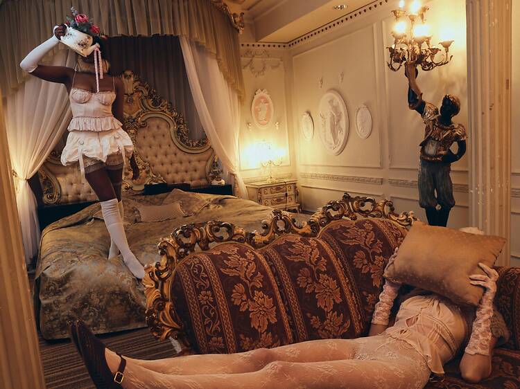Hotel Brugge goes all in on European excess. Their furnishings are the real deal. Every piece, from the bedframes to the chandeliers, was imported, and the hotel has taken their aesthetics seriously since opening in 1998 as a family-run business. One floor is devoted entirely to Venetian light fixtures and carnival masks, while Room 007 comes with its own outdoor swimming pool, plus a second bedroom and a living and dining space large enough to make the word ‘suite’ feel accurate. Karaoke runs in every room. Brugge is truly Disney for adults.
