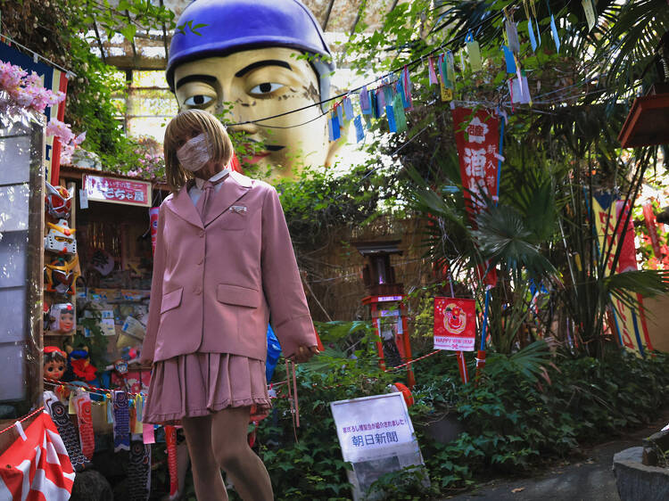 Hidden in the hills of Ito, Maboroshi Hakurankai is part museum, part fever dream. It’s a maze of mannequins, taxidermy, Showa-era erotica, and decaying pop-culture relics spread across five greenhouse-like rooms and outdoor corridors. The collection feels suspended between worlds: half post-war nostalgia, half Lynchian nightmare.