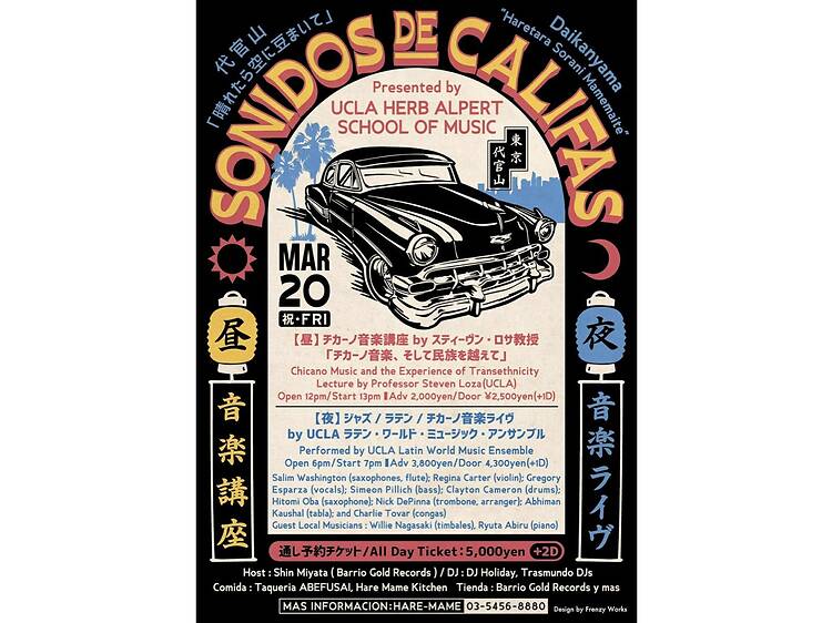 UCLA’s Latin World Music Ensemble – made up of graduates and professors from UCLA’s Herb Alpert School of Music – is performing a special show at Daikanyama’s Mame Romantic on March 20. The action-packed full-day event is being hosted by record distributor Music Camp Entertainment Inc, which has been promoting Chicano culture in Japan for many years, and Shin Miyata, president of the label Barrio Gold Records.