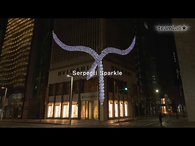 Bulgari Serpenti Sparkle 2023 takes over the massive Bulgari Ginza Tower by lighting up the brand's iconic Serpenti snake, which you can manipulate with different colours and patterns through your smartphone.