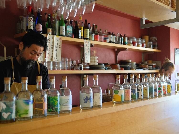 Just a seven-minute walk from Monzen-Nakacho Station sits Kamabisu, a counter-only izakaya operated by Toranomon Distillery. Established in 2020, the distillery produces a wide range of craft gins, including an exclusive series made with seasonal botanicals. Bottles line the counter at Kamabisu, inviting guests to taste and compare the fascinating spectrum of Japanese gin. While the menu is designed to pair with gin or shochu, they also offer excellent non-alcoholic drinks made with seasonal fruits.