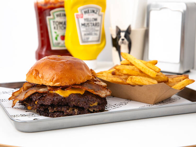 The burgers are kept simple to highlight the beef, with just onion, original mayo-based sauce, cheese and your choice of a milk or charcoal-coloured bun. Since the patties are so thin, going for a double or triple is highly recommended. You can also opt for a bacon cheeseburger or the Oklahoma-style version loaded with sliced onions. The charcoal bun comes with white cheddar, with options like chilli cheese, mushroom or avocado basil available.