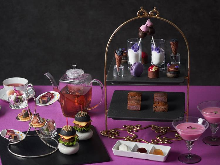 The afternoon tea at InterContinental Tokyo Bay revolves around the sophisticated colour combination of violet and black. As such, you'll be enjoying Bordeaux-coloured berry tarts, sweet and sour cassis macarons, blueberry cornets and more besides. There will also be mini burgers as well as free-flowing mocktails.