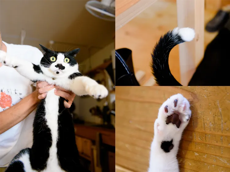 What initially surprised us about Toto was his size. A full-grown and voluptuous kitty, he looks like a tough cookie but is actually quite the softie: he jumps every time a loud car passes by, while the sound of an opera floating out of the TV is enough to cause the same reaction.