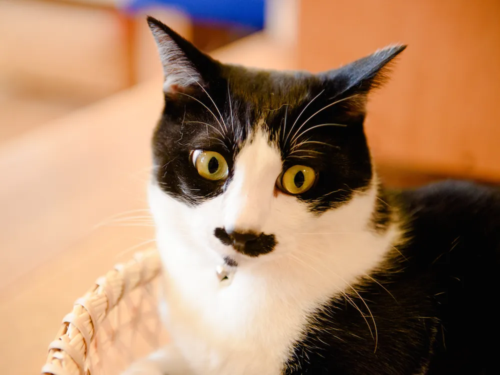 The owners swiftly called him to attention and, surprised by the sudden sound, the kitty's eyes widened to the same size as the tingling bell around his neck, after which he slowly prepared to recommence his duties.