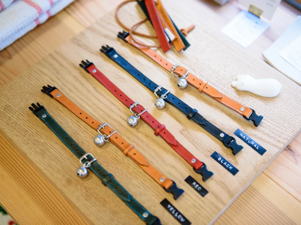 When visiting, be sure to admire Toto's leather collar (it's on sale at Musubi too). Besides having a safety buckle that unclips in case of an emergency – being stuck in a tree comes to mind – it's engraved with his name and phone number in a way that won't fade with age.