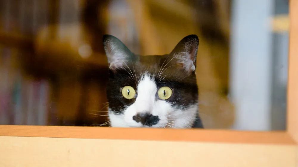 When Toto first started out, the constant flow of people coming and going made him feel a bit lonely, but he's taken his duties as a proper shopkeeper very seriously since, scrutinising the scene from the window and keeping tabs on all customers.