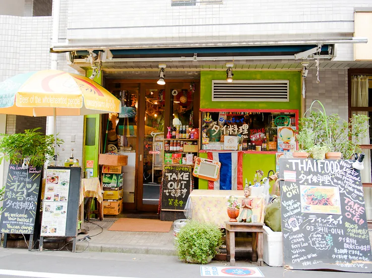 Only five minutes on foot from Shimokitazawa Station's south exit, the homely Thai-style restaurant Tit Chai is hidden away down a street just off the main drag. It's known for authentic flavours and an ever-cheerful owner, who keeps customers lingering over their lunchtime bentos on weekdays.