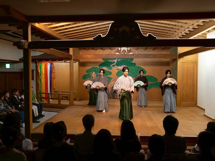 The venue is used as a place to promote Japanese culture, with performances of traditional performing arts, including recitation and dance practice by Nakajima Shizuo, a Noh performer of the Kanze school.