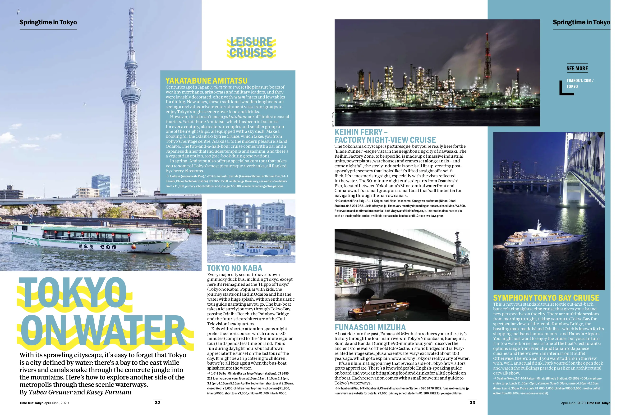 With its sprawling cityscape, it’s easy to forget that Tokyo is a city defined by water: there’s a bay to the east while rivers and canals snake through the concrete jungle into the mountains. Here we recommend ten ways to explore the metropolis through its scenic waterways.