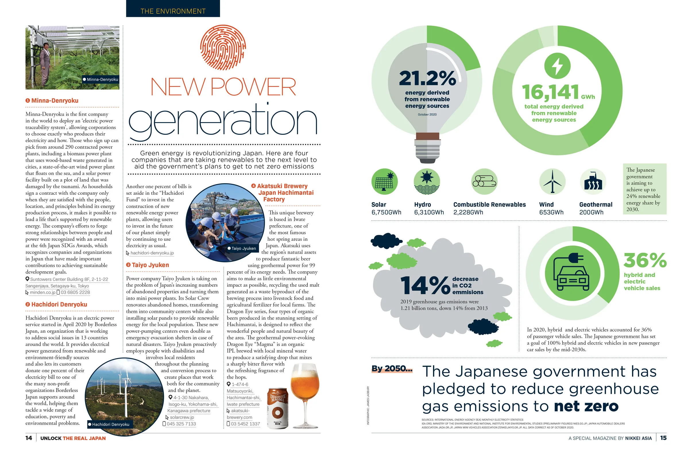 This issue explores how Japan is planning to become an emission-free country in the next three decades. Read about four pioneering green energy companies that support Japan’s goal to reach carbon neutrality through cutting-edge sustainable initiatives. In an exclusive interview, Eiji Ohira, director general of the Fuel Cell and Hydrogen Group at the New Energy and Industrial Technology Development Organization (NEDO), talks about the prospects of hydrogen energy and how work at the Fukushima Hydrogen Energy Research Field could support Japan’s path to a green future.