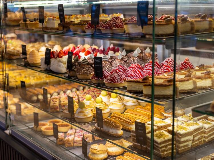 The bakes are made at a unit up the road from the main shop, with all the mixing, laminating, piping and decorating done by hand by a team of seven. According to British Baker, customer favourites include the ‘tipsy cake’ made with Madeira cake, rum-flavoured raspberry preserve and fondant icing, the twice-baked almond croissants, the peach melbas and the sausage rolls.