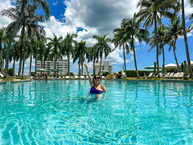The next day was for rest and recovery, and when you’re staying at the Four Seasons, that means rotting by a pool. We went ahead and reserved a cabana for ourselves as soon as we made our reservation at the Four Seasons, knowing we would need the day to sweat out champagne and chicken fingers in the sun. Hey, what can I say? Being in your 30s and 40s looks a lot different than partying in New York in your 20s. We got a plate of fresh Floridian fruit and a smashburger for balance, and naturally, we ordered drinks.