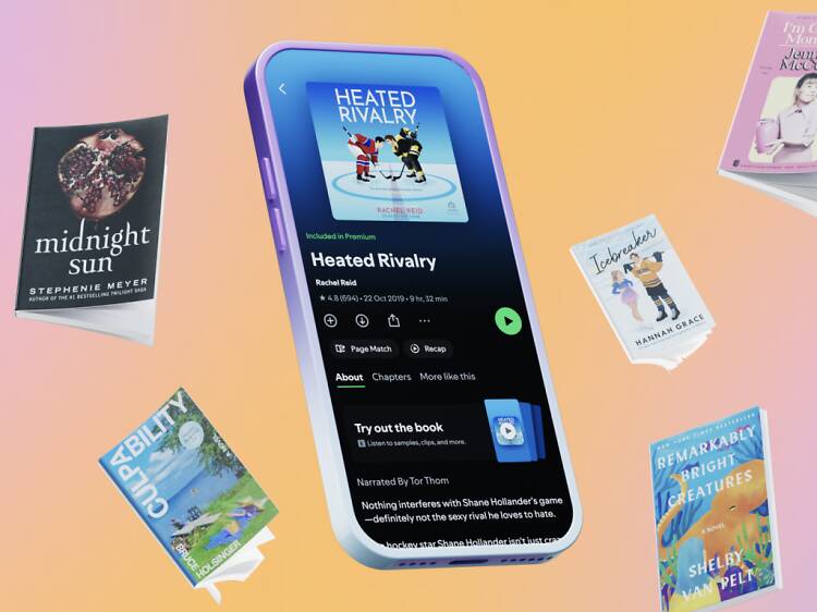 Like they said, it's currently only available on the Android Spotify app. I was curious if it was available on Windows PC app, so I tried buying Heated Rivalry, but no dice. I went to the audiobook and clicked the three dots near the play button to open a dropdown list. At the bottom is "Buy book," which took me to a checkout on my browser—to buy the audiobook.
